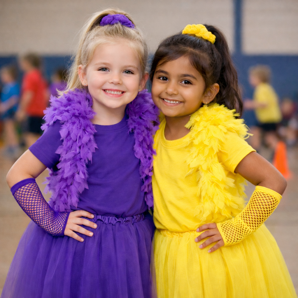 Sports Day Essentials makes school sports day easy with bright team-colour t-shirts, socks and fun accessories all in one place. Perfect for sports carnivals, colour run events and dress-up parties, everything is delivered Australia-wide and loved by kids everywhere.